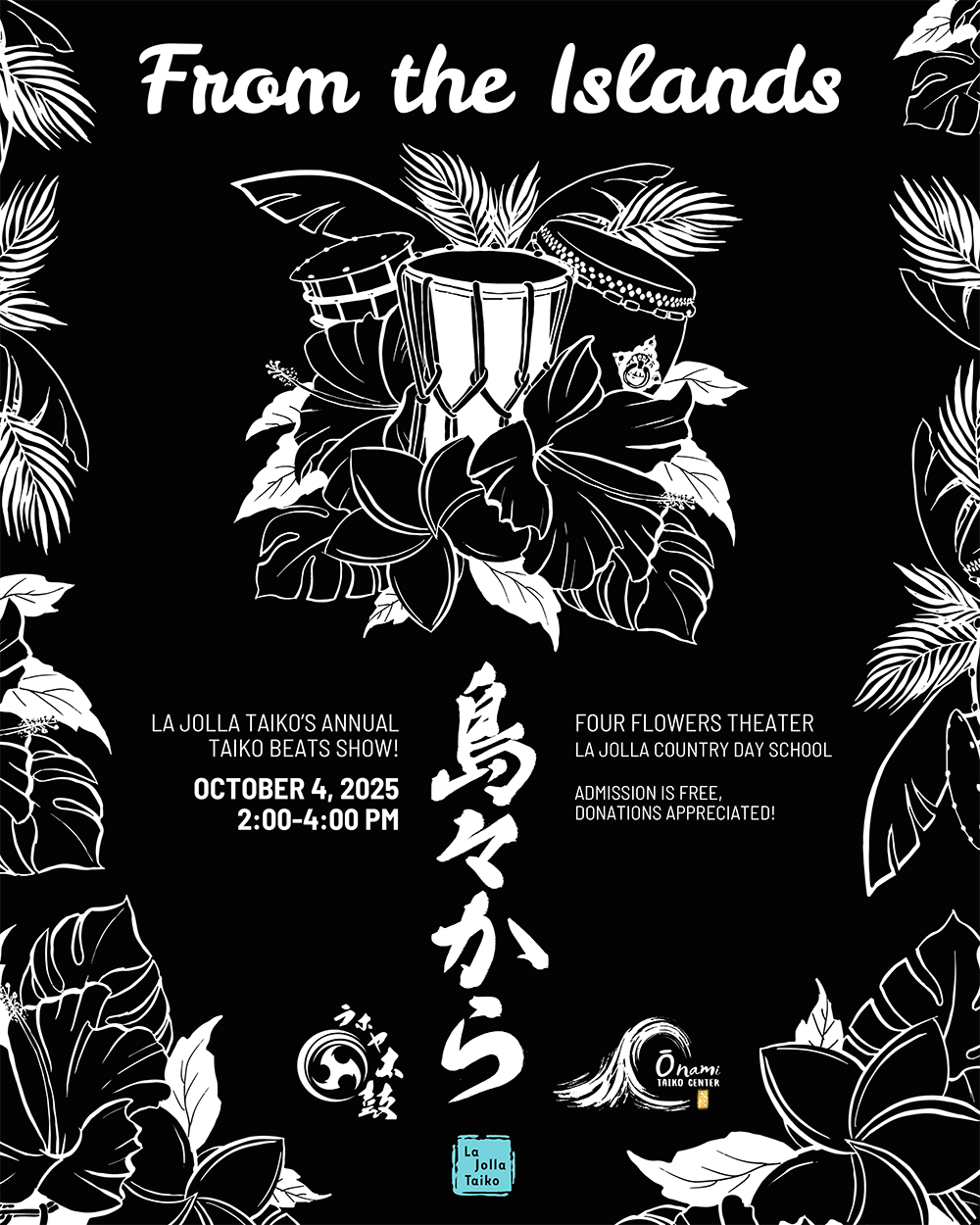 Taiko Beats brings together the full community at О̄nami Taiko Center (OTC). Students from all levels, including our Hikari, Asama, Kodama, Sakura, Wakaba, and Toki classes, as well as participants from La Jolla Country Day School and La Jolla Taiko as the performing ensemble, come together to share the same stage. That mix is something we look forward to every year.